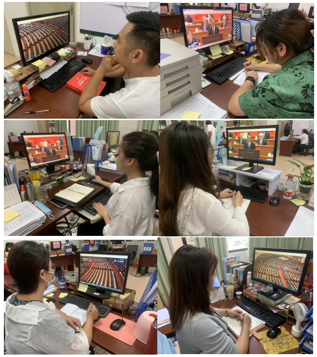 经济与贸易学院教工第一支部副书记黄燕玲老师观看直播
