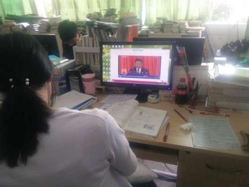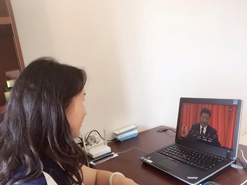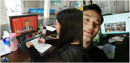 此外,在中文系党总支的组织倡导下,在实习单位和宿舍的中文系师生也对中国共产党第十九次全国代表大会开幕会进行分散收看学习,态度积极上进,努力与党同心同行。
