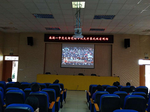 中文系学生党员14级张秀琪、林静燕等12名学生在实习单位麻涌一中收看十九大开幕会报告