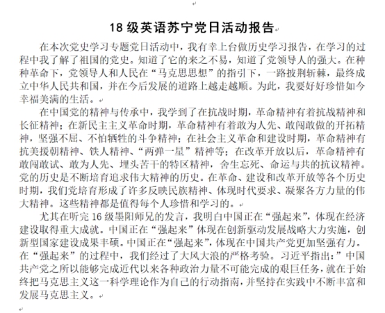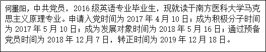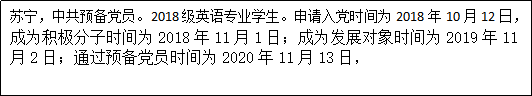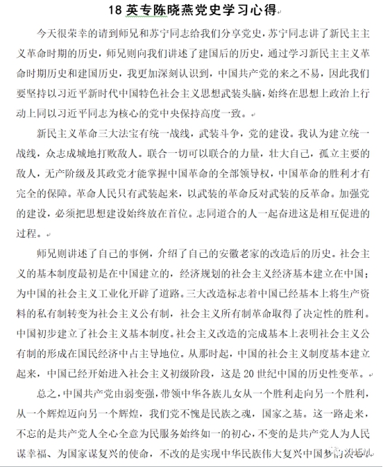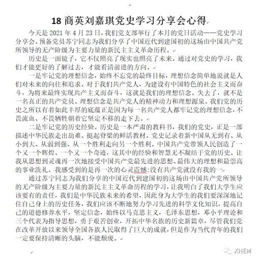 为了认真贯彻落实习近平总书记的重要论述,进一步坚定支部党员同志的理想信念,确保高质量完成学习教育各项任务。外国语学院学生党支部于2021年4月24日在格物楼②A214举办“党史学习教育分享会”党日活动,此次会议专程邀请2016级英语专业毕业生何墨阳同志返校进行党史学习教育分享,由李泽东同志主持召开。本次分享活动以老党员带新党员的形式进行,