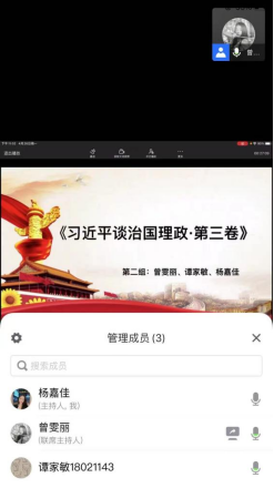 外国语学院学生党支部第二小组同样采用线上研讨模式,着重分析第四章节——坚持以人民为中心,通过学习,组员们表示:坚持以人民为中心是《习近平谈治国理政》第三卷的主线,是习近平执政理念的基石,以其为脉络,认真贯彻学习《习近平谈治国理政》第三卷,不断提高当前的思想政治理论水平,理论联系实际,提高实际问题的解决能力。