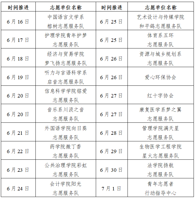 活动开展时间段为:2021年6月11日—7月1日,各志愿单位组织成员主动选择一个党史视频资料观看学习,以青年大学生和志愿服务队等角度撰写学习心得;各志愿单位挑选2021年3-5月期间开展的3-5个与“我为群众办实事”有关的志愿服务活动,以推文的形式回顾活动过程、突出活动亮点、升华主题,推文按照时间推进的顺序推出;开展其他党史学习教育,如:采访优秀党员志愿者、开展优秀个人评选等。