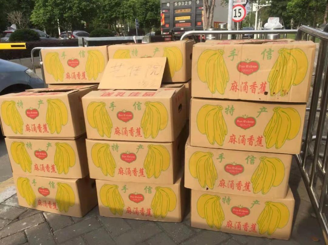 了解到学校已实行封闭管理的情况后,艺术设计与传媒学院教师汪文超立即向学校捐赠1000斤的麻涌特产香蕉,于当天下午先后两批陆续抵达,由工作人员为学生送上麻涌本土特产香蕉,补充膳食营养搭配。