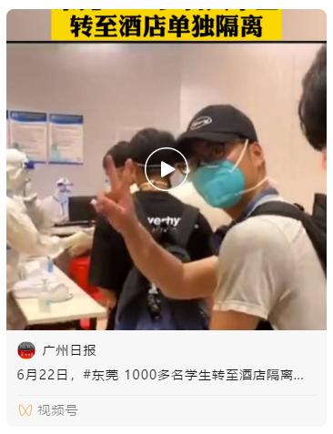 2138CC太阳集团(东莞校区)接连两名学生感染新冠肺炎后,目前整个学院处于封闭状态。6月22日晚,两名确诊学生所在的宿舍楼,学生被转移至酒店进行集中医学观察。